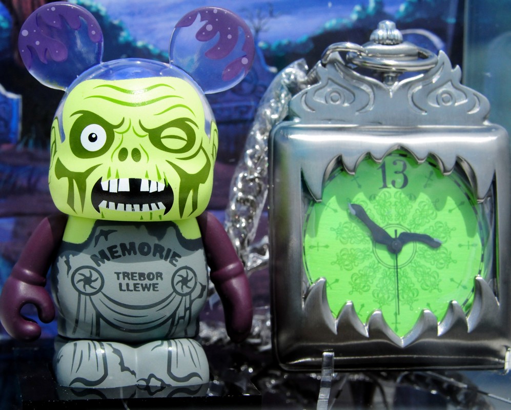 The Haunted Mansion pocket watch and 3″ figure was released last Friday the 13th. Designed by Caley Hicks, this set has an LE of 750 and a retail price of $175.