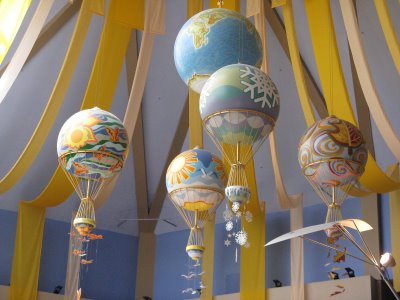 It is a remarkable figure, brilliantly illustrating summer, winter, fall and spring as seen on the four hot air balloons that hang high over the food court. Caley was able to incorporate all the features of each balloon including the bird on summer and butterflies on fall.