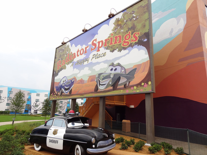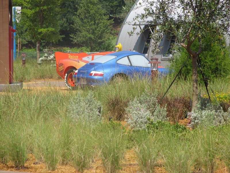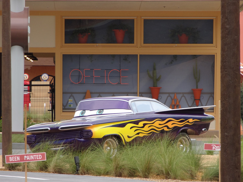 Haul-O-Ween is coming to Cars Land at Disney California Adventure and the residents of Radiator Springs are getting into the spirit, decorating each of their establishments and even dressing up in their own car-stumes! As seen above, Lightning McQueen is already a super hero to race fans, and his car-stume reflects that. Here he is next to the scare-car, which makes its Haul-O-Ween debut this year.