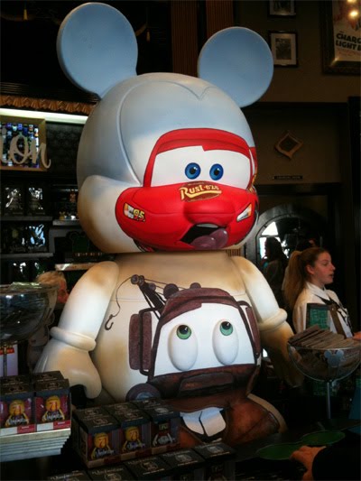 Here’s the giant Cars vinylmation that we saw several months ago. Little did we know, but this pointed to which characters were going to be part of the Cars 2 set!