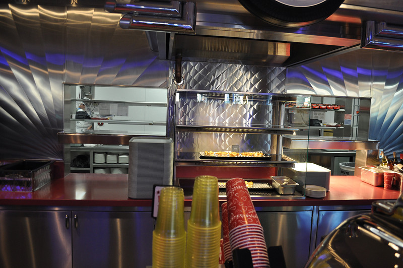 The Food Court in the Pacific Wharf area is a highly effective central meeting place and is appointed in a rustic California style.