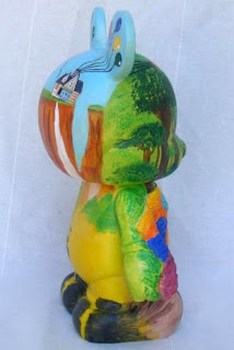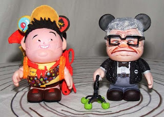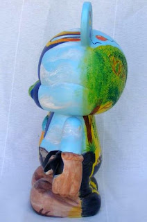 DV: I enjoy when artists don’t just force a mirror image of the front onto back. The back of this figure is a beautiful depiction of the movie UP. Is it difficult to paint such a detailed image onto the Vinylmation canvas?