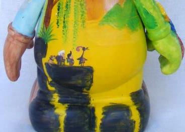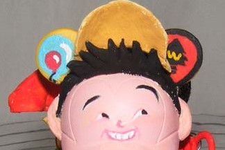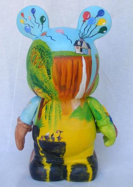 DV: I enjoy when artists don’t just force a mirror image of the front onto back. The back of this figure is a beautiful depiction of the movie UP. Is it difficult to paint such a detailed image onto the Vinylmation canvas?