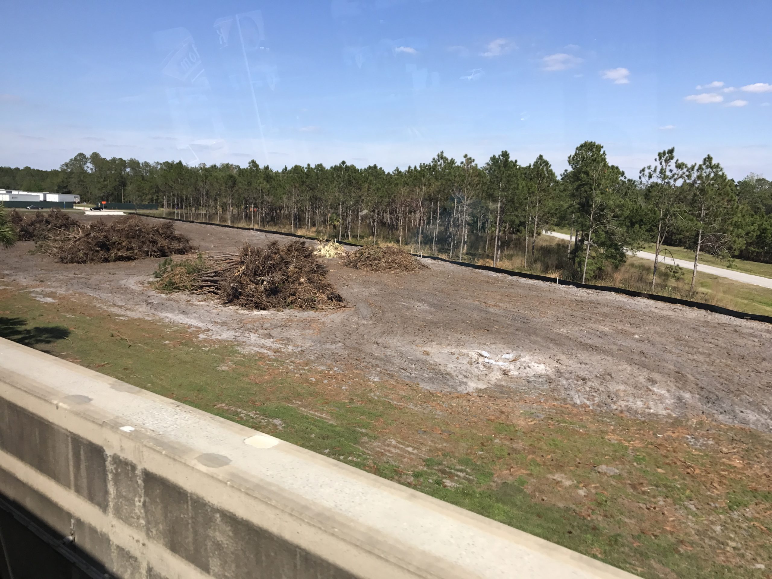 A ton of trees on the right side of the toll plaza are cleared for a new road to take guests to Fort Wilderness Resort and Campground.