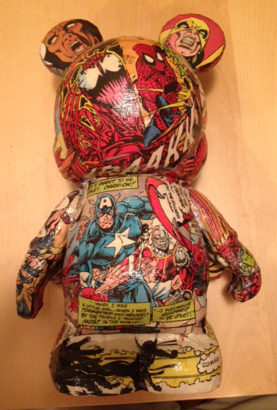 Melissa: I was a big believer in not taking the Vinylmation apart- I was so afraid I would break and arm or things wouldn’t look right, but it is so much easier if you do. Michael was also the first Vinylmation I ever painted on a “Custom” mold (we usually spray paint commons), and although I really like the surface, I felt like I had to do more layers (but the stars in his ear glow, so it was worth it)
