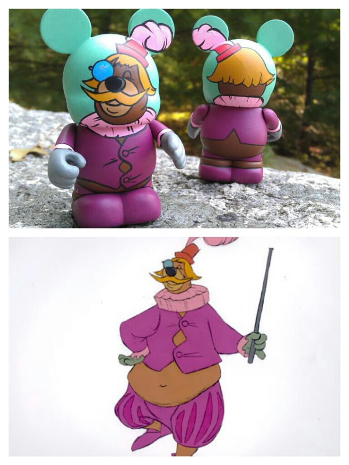 After three years of doing Vinylmation customs, I really have come to appreciate just how adaptable the Mickey shaped canvas is for creating just about any character. If you design it right, you can make tall, short, thin, or chubby characters fit by playing with their wardrobe and accessories. You can also give the illusion of flatter faces or snouts. As for the ears, I used to find them the most perplexing part of the mold, but now, I consider them the best. The ears can be used to place eyes, pointed ears, and antennae, or they can be used to set the scene by providing a sense of the background environment.
