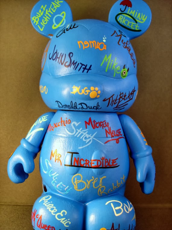 Melissa: I was a big believer in not taking the Vinylmation apart- I was so afraid I would break and arm or things wouldn’t look right, but it is so much easier if you do. Michael was also the first Vinylmation I ever painted on a “Custom” mold (we usually spray paint commons), and although I really like the surface, I felt like I had to do more layers (but the stars in his ear glow, so it was worth it)