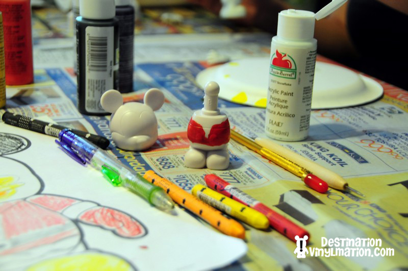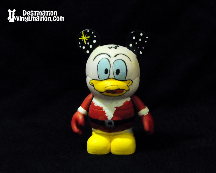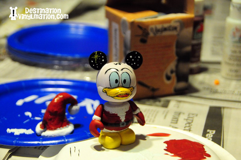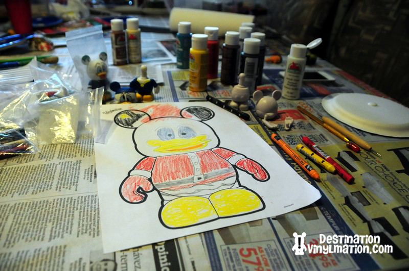 Ya, I never thought I’d be featured here either! But a few weeks back, a friend of mine, and a listener to the podcast, showed me her custom Vinylmation. She was surprised to find out that I hadn’t attempted a custom myself. Now, I had thought about it from time to time, but I don’t consider myself an artistic person. First, it looks so daunting to me. Second, I don’t have the tools and although there are plenty of tips and tricks on the net, I’d really have no clue where to start or how to attack the canvas. But she insisted that I dive right in and, with her help, give it a try. So I sat down to sketch out my first design, and before I knew it, I was hooked. I had 12 different designs drawn out! But my first idea was my favorite character Donald Duck as Santa.