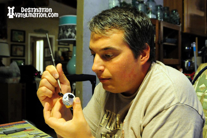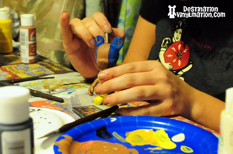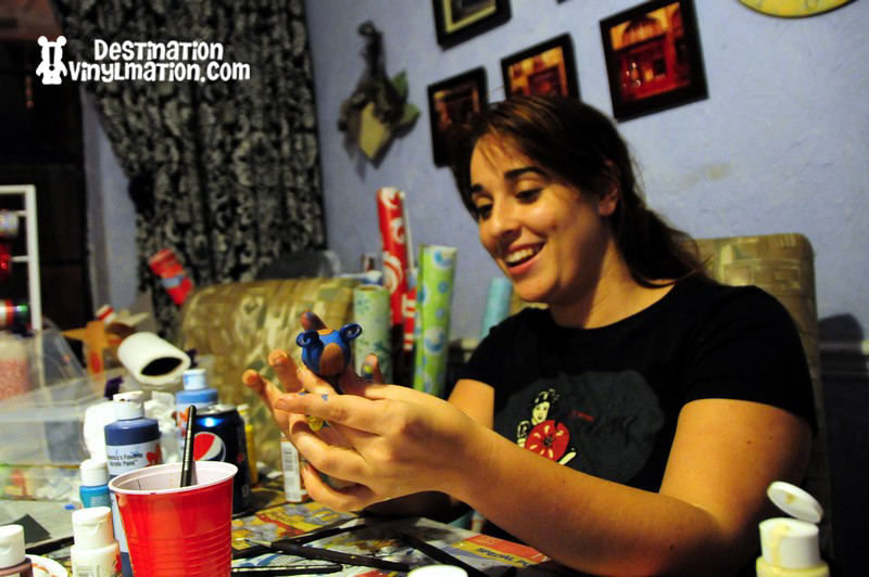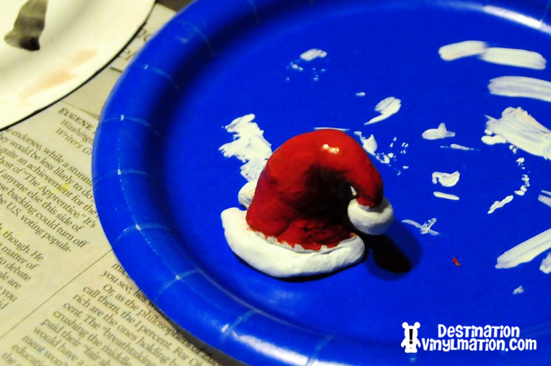 For the snow in the ears, I just used a pointy metal tip and dotted the ears. The jacket came out better than I imagined. I’m sure this is a real technique, but I decided to try to just poke at the vinyl with the white paint to create “puffs” for the collar, and it worked great.
