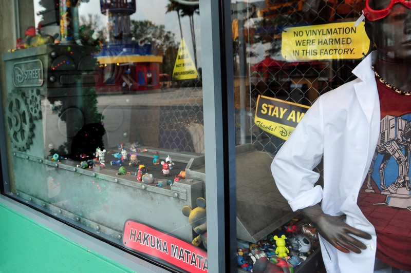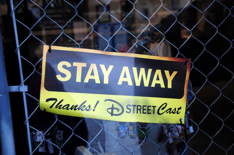 Any doors or windows that are boarded up in the area now have these Disney Springs signs