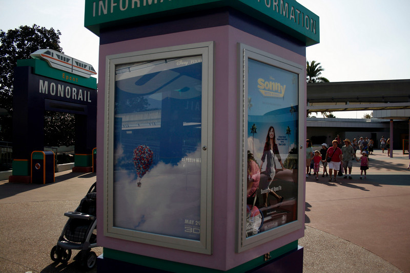 Posters for Disney-Pixar’s “Up” and Disney Channel’s “Sonny with a Chance” at the Transportation and Ticket Center