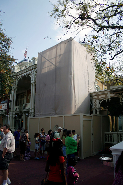 Some exterior work on the Exposition Hall on Main Street U.S.A.