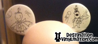 On the back of the ears are drawings of Doug and Porkchop as superheroes. These are Quailman and Quaildog from several episodes of the series.