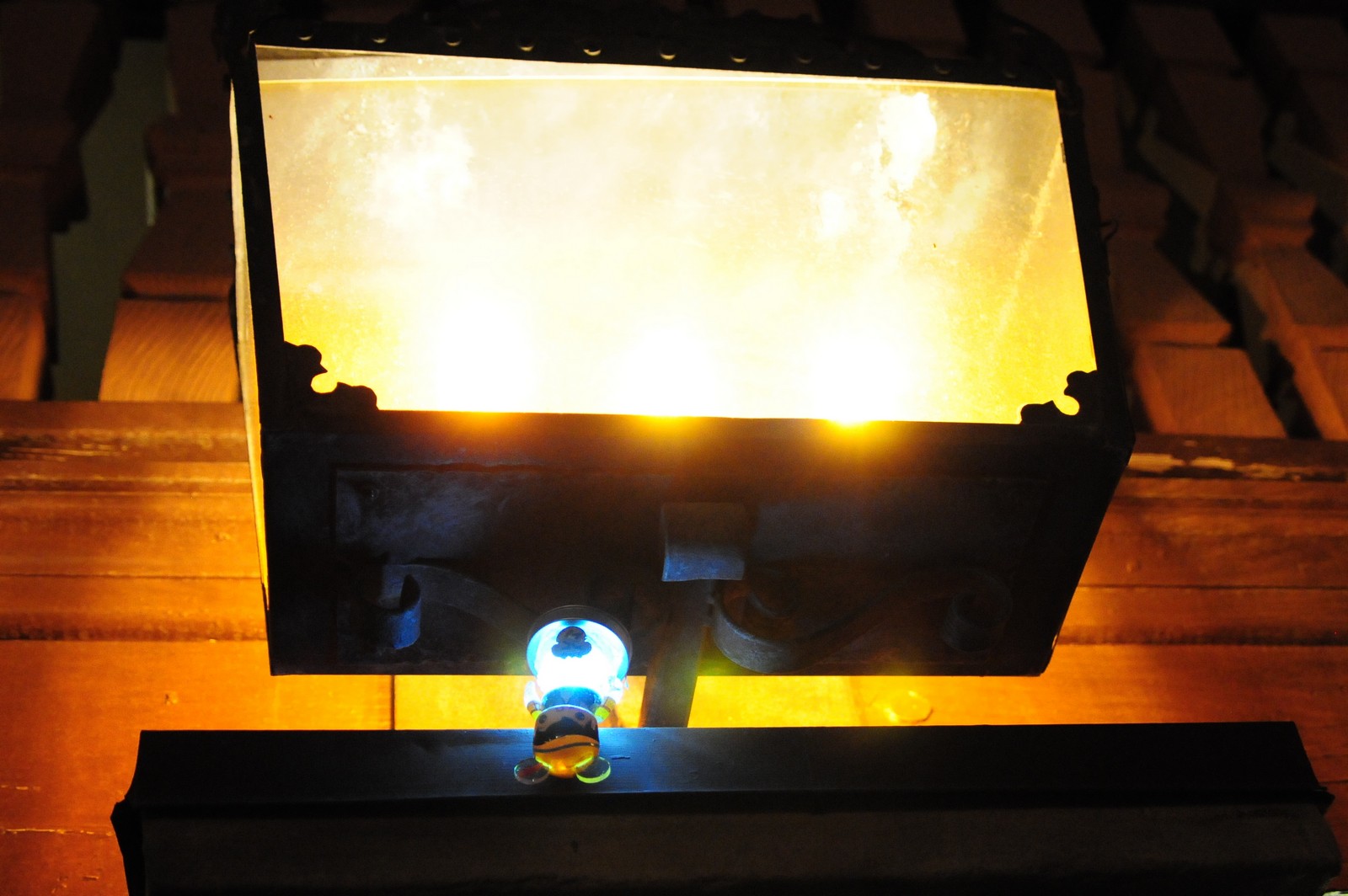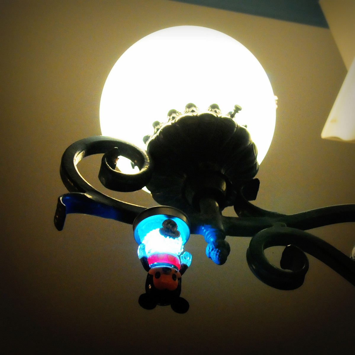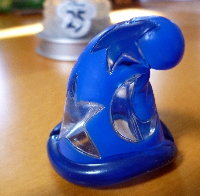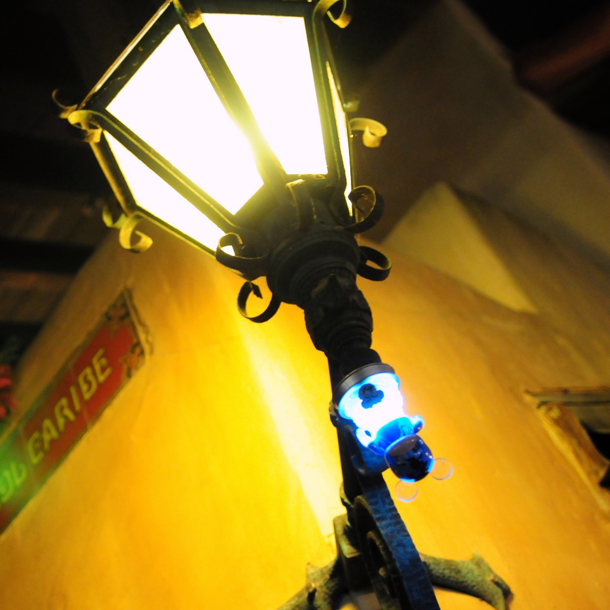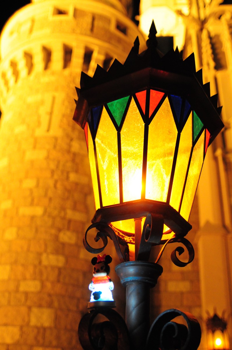 When lit up all figures have a line of light coming from the neck, some more than others as the paint doesn’t fully cover the very top of the body and the very bottom of the head. Perhaps this was a design decision so that head can be lit up, but to me it looks unsightly. Similarly a line of light has often escaped from around the brim of the hat. Speaking of the hat, the blue paint doesn’t reach the outline of the stars and moon and due to the fold shape, lighter and darker areas can be seen due to more paint being added to some parts more than others. With one or two figures light also can be seen through the applied design, often with the black parts of mickey’s head, such as the nose and back of head.