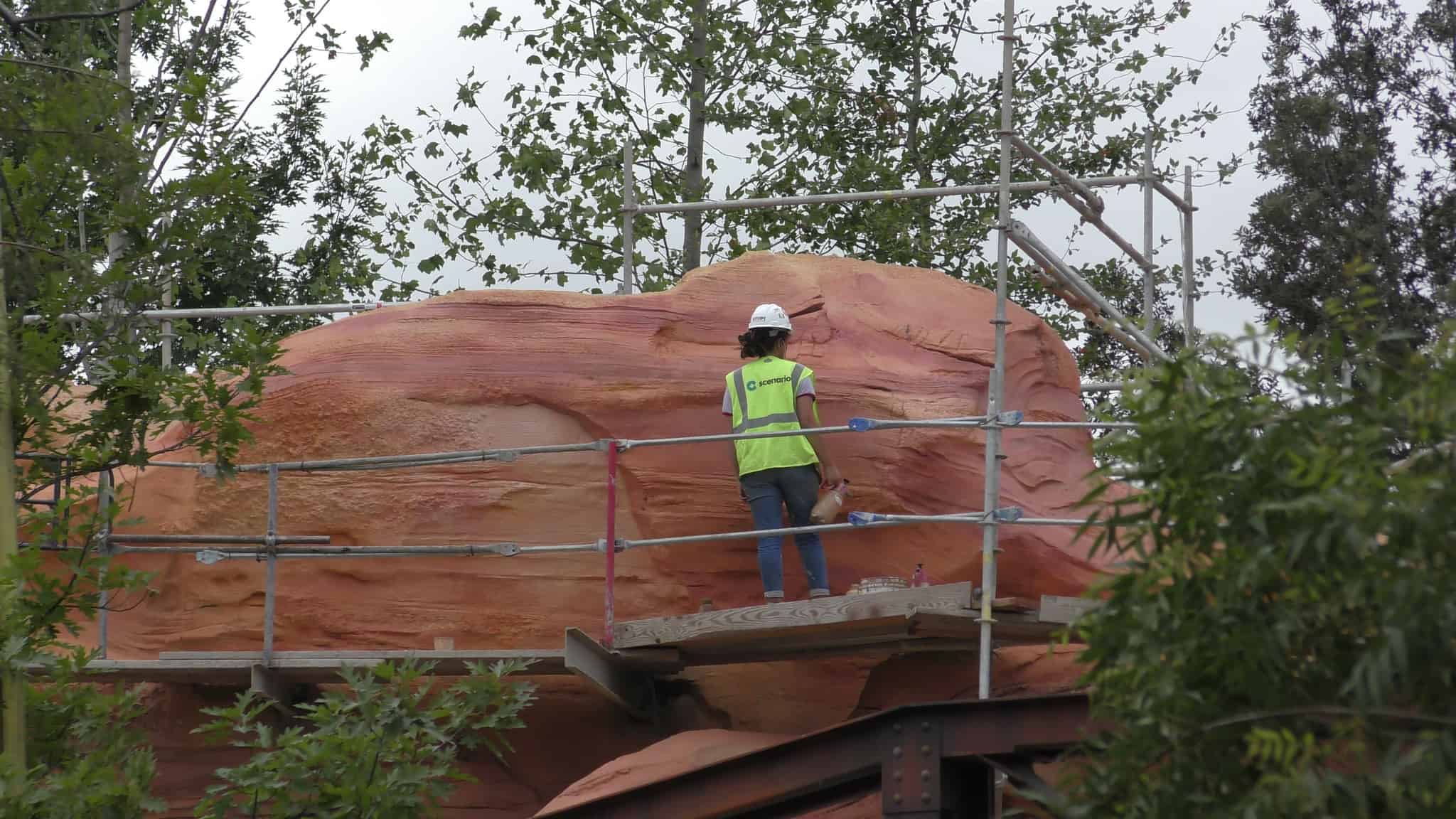 The first pieces of sculpted metal rock-work on top of the show buildings in Star Wars: Galaxy’s Edge have appeared.