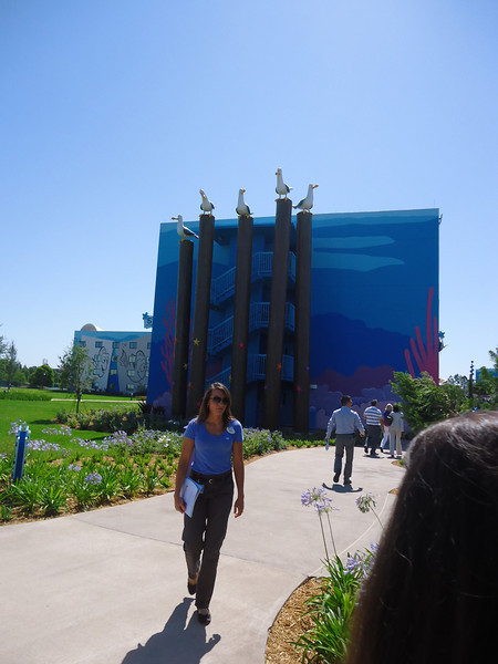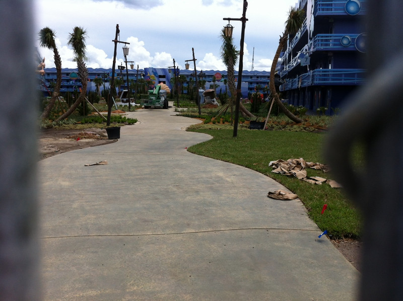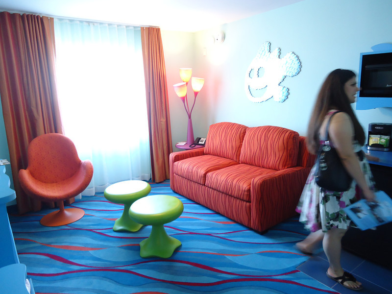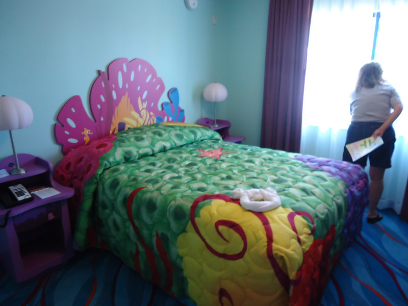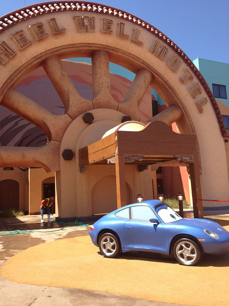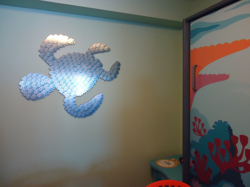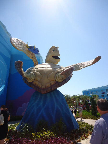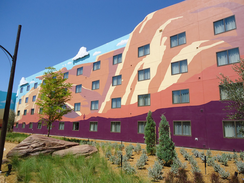 - Disney’s Art of Animation Resort – Walt Disney World’s newest resort offers three pools: The Big Blue Pool, Cozy Cone Pool, and Flippin’ Fins Pool. The Big Blue Pool, themed after Finding Nemo, is the largest resort pool on property, at over 300,000 gallons. The Drop Off near the pool offers drinks and food. The Big Blue Pool is the only pool with a nearby bar, and the first Disney pool to have underwater speakers. All three pools are available to guests staying at the resort and are beautifully themed, with large set pieces modeled after their respective movies. The Cozy Cone and Flippin’ Fins Pools, both much smaller than The Big Blue Pool, are themed to Cars and The Little Mermaid, respectively,