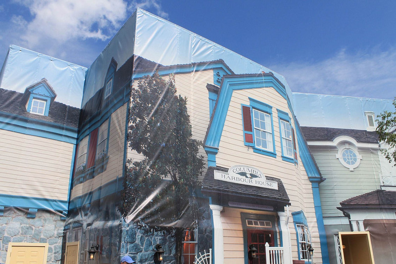 Columbia Harbour House is still behind tarps