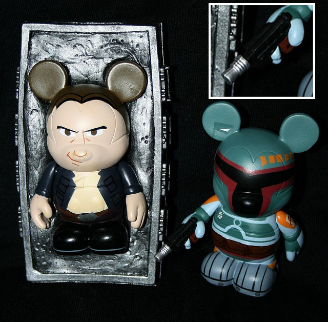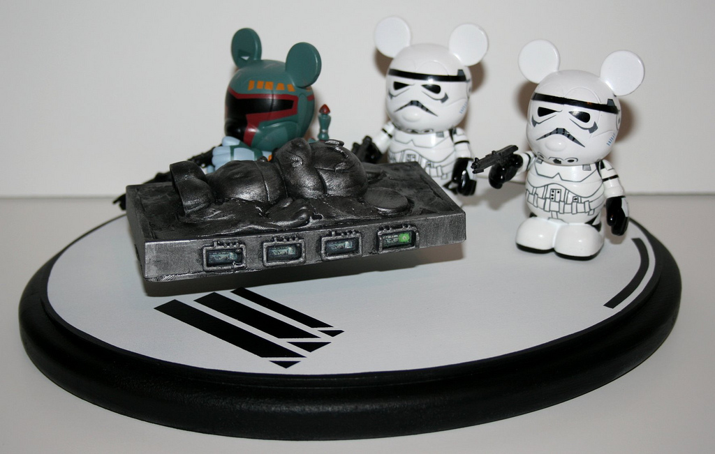Beautifully done as always you can pick this piece of art up at Ebay: Vinylmation Custom Star Wars Han Solo In Carbonite ESB