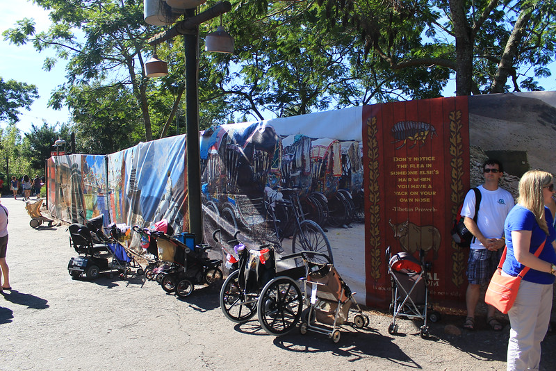 These walls appear along the Theater in the Wild stroller parking path in Dinoland