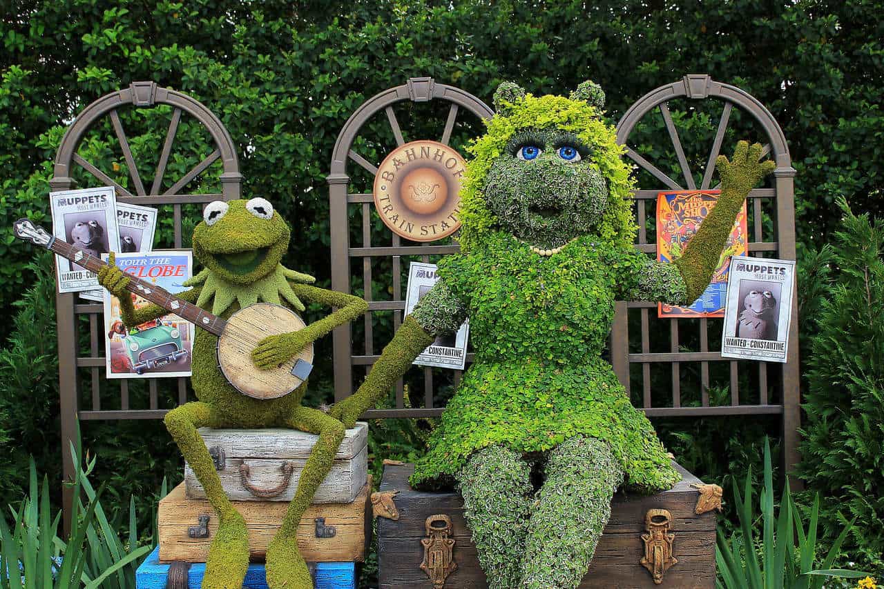 - The festival’s front-entrance Party with Mickey & Friends topiary scene comprises