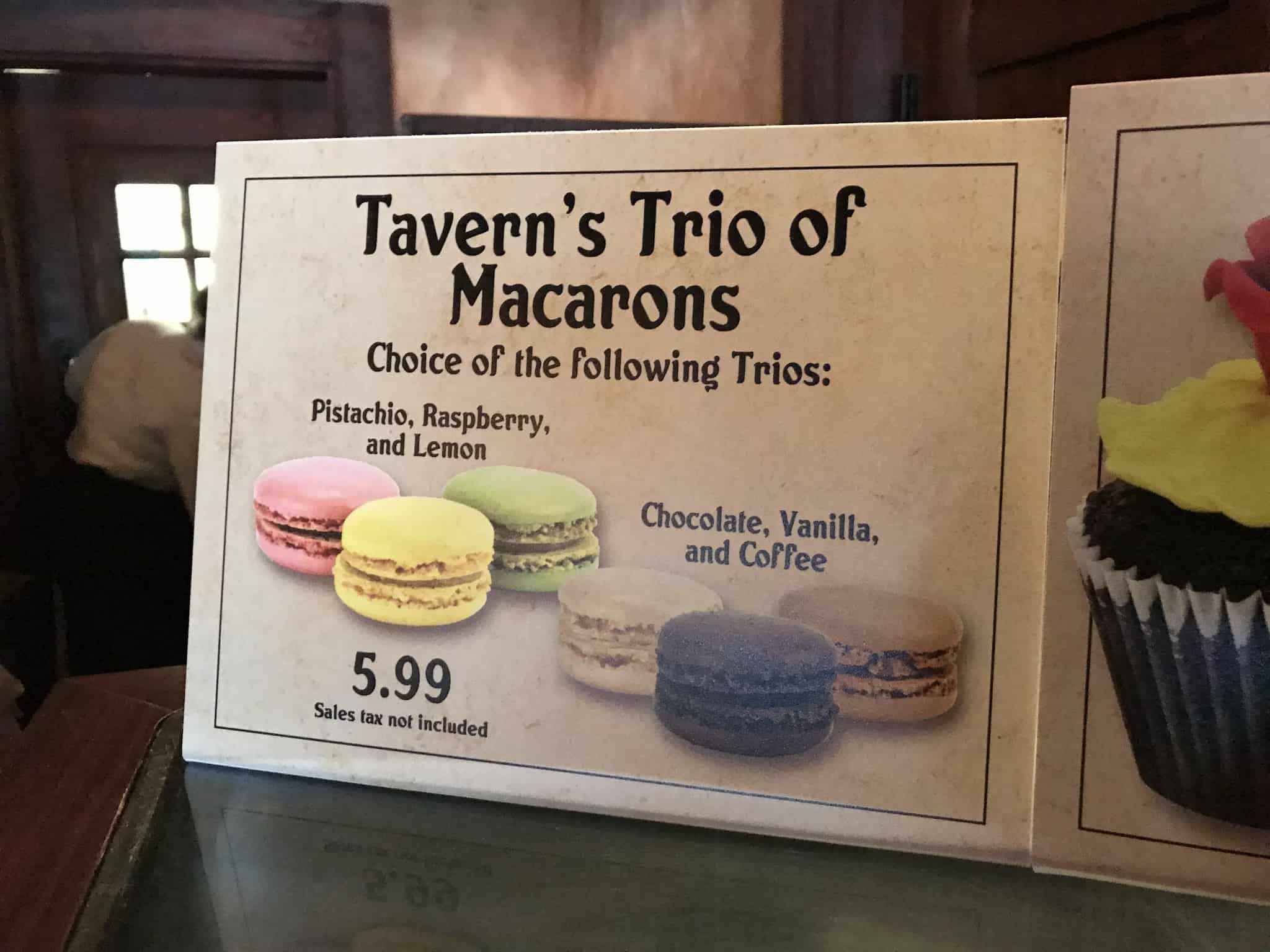 In the 5 years it has existed, Gaston’s Tavern in Fantasyland at the Magic Kingdom has seemingly had an endless number of offerings come and go. From pork shanks and beef stew, to specialty hot chocolate and cupcakes, there are many items that came and left at the Beauty and the Beast-themed eatery. The latest items to roll through that revolving door are macaron trios…