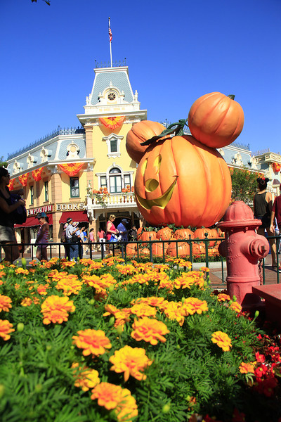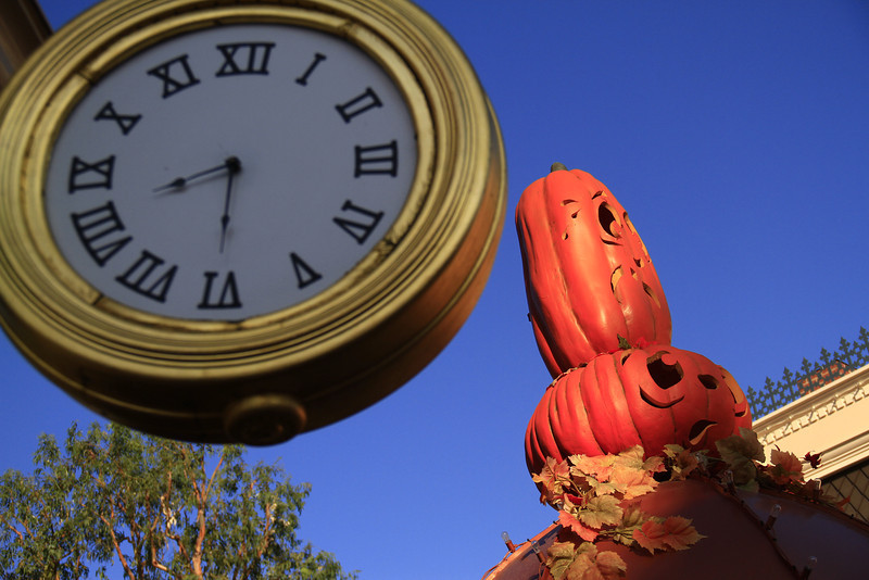 Halloween Time and the Diamond celebration decorations clash on Main Street.