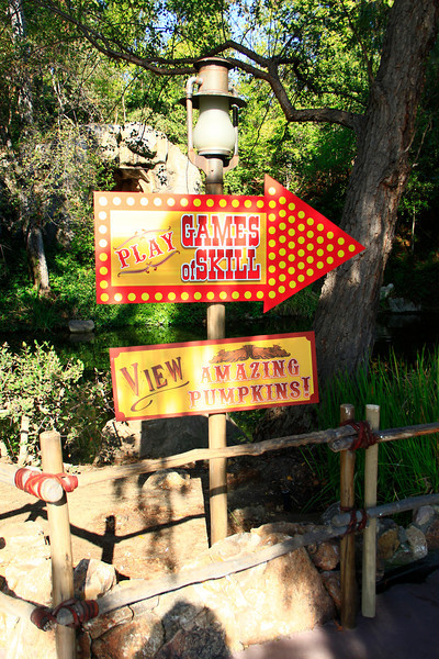 Colorful signage leading to the Halloween Carnival at Big Thunder Mountain Ranch