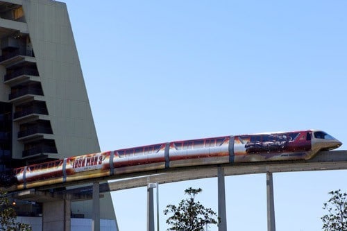 While the latest installment of the “Iron Man” films doesn’t hit theaters for a few more weeks, an “Iron Man 3”-themed monorail train began rolling around the Walt Disney World Resort Seven Seas Lagoon last weekend.