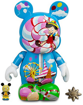 An LE 500, this set comes with a colorful 9″ featuring Pinocchio having fun at Pleasure Island, a Junior Jiminy Cricket and a pin. It retails for $74.95 and is available online as well as the North Michigan Avenue Disney Store in Chicago, Times Square Disney Store in Manhattan and the Walt Disney Studio Store in Burbank.