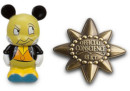 The Junior Jiminy has a great facial expression as he is watching Pinocchio. The pin reads “Official Conscience, 18KT”. A nice touch.