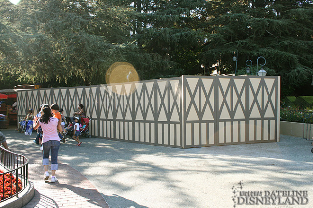 A construction wall has popped up near the old Fantasyland Skyway Station. Don’t get your hopes up though, because there’s no way the Skyway is ever returning.