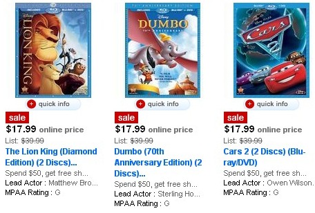 Target is running a nice sale right now online and in stores with select Disney Blu-Ray/DVD combos at $17.99. I happened upon this sale yesterday and purchased Cars 2, Muppets, Dumbo and Lady and the Tramp. I know Tangled was also in on the deal as were a few others. It seemed many of the Disney DVDs where also on sale.