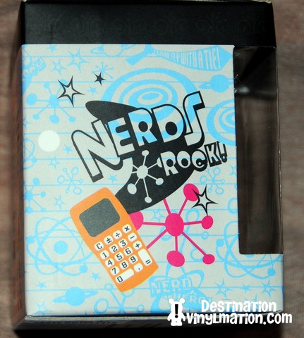 Disney’s Nerds Rock! series has been a popular theme for clothing and other Park merchandise and today they were released in Vinylmation form. Each figure retails for $9.95 at D-Street in Orlando and CA and will be released soon at the Disney Store Online. We got our hands on the 8 figure Doug Strayer (9″ Urban 1 Tin Mickey, 9″ Urban 2 Tiki Mickey, 9″ Urban 5 Moon) designed Open Window set today. So sit back, relax and take a trip into the world of pocket protectors, chess club and weggies. We present to you, Nerds Rock!