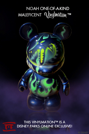 According to the vinylmation.com blog, there will be a new part of the Online Disney Store coming soon. On November 18th there will be a new Vault 28 section online. As part of the products there, NOAH will be designing this 9″ Maleficent figure which you can purchase for 650 dollars. These figures will be a limited release, with all figures being made after they have been purchased.
