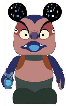 We have Jumba to thank for bringing the lovable Stitch into our lives. Jumba created Experiment 626, as Stitch was named before Lilo adopted him, in the 2002 Disney animated “Lilo and Stitch”. Jumba’s round head and large body fit nicely onto the 9″ Vinylmation figure. The artist brilliantly uses the ears to represent the stars and planets of outer space. Stitch Jr. is the second Vinylmation for this fan favorite Disney character. His first appearance was as a 3″ vinyl in the Park 5 series.