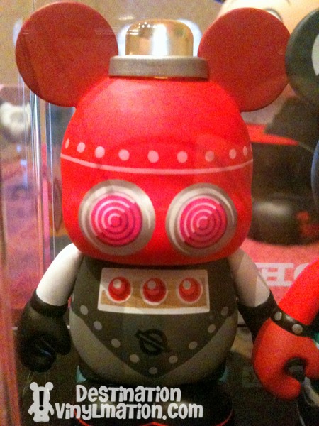 With the first Robots set put in the hands of the Disney Store artists, it was a mild surprise to see the second series designed by artist Billy Davis. Billy, has given us Sea Creatures and even the Urban 8 Robot. That Robot was sure a pre-cursor to what we will see in Robots 2. Billy certainly took a different angle on the look of the Robots for this series and so far, I think I like it better than the first series. Shielded from view (guess they were not supposed to be on display last night) were two other Robots, and one had a big bubble (think Buzz) giving a 50’s sci-fi movie robot feel. Since I just dined in the Sci-Fi diner, I recognized the style.
