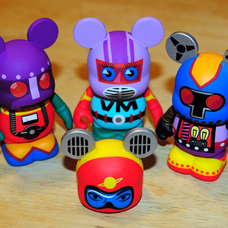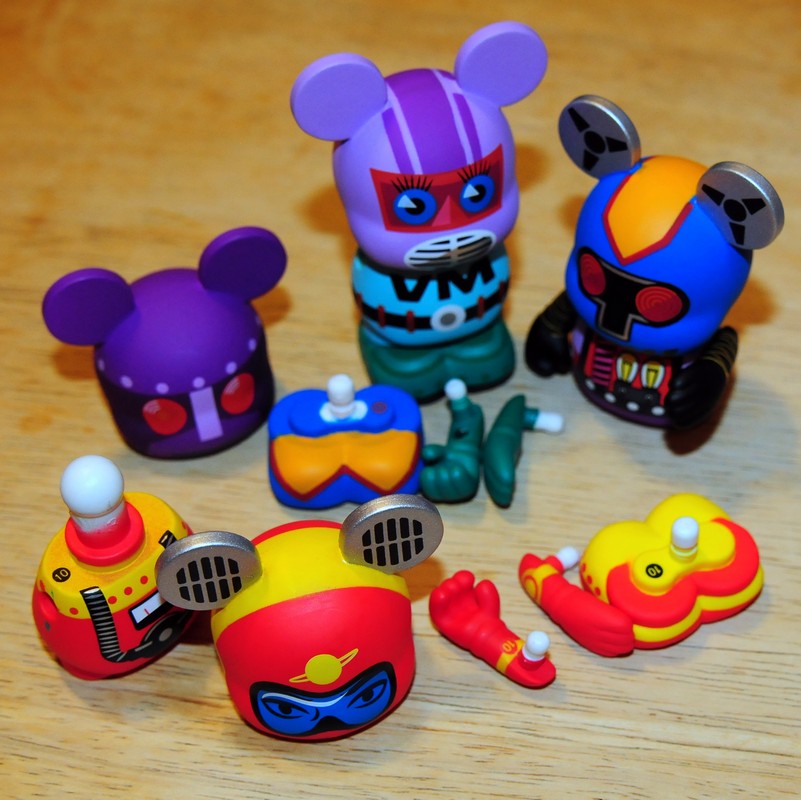 Robots 2 is a brand new idea in the world of Vinylmation. The premise… take 12 figures designed as retro robot toys. Pull off their arms, heads, bodies and feet. Mix them up and reassemble them with mix-match parts. Then have collectors search for the parts they need to assemble the Robots they desire. Sure, frustrating for completionists. OK, maybe a little gimmicky. But I truly enjoy this twist and think it’s a fun addition to the hobby. It is at the same time an enjoyable game for kids and a fun challenge for collectors.