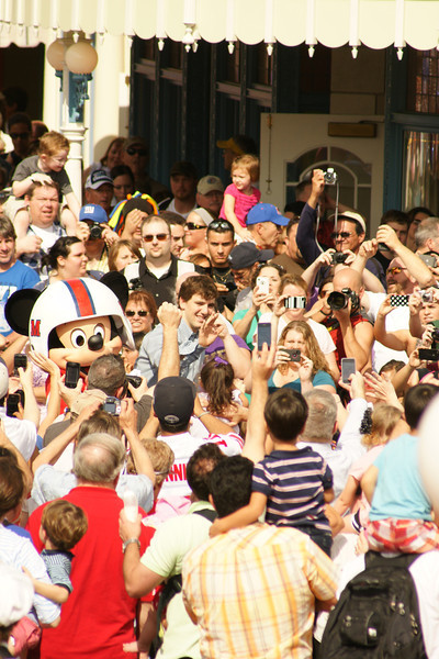 The main street characters were out entertaining guests waiting for Eli Manning to parade down the street. I really don’t like the new one in the beige shorts…