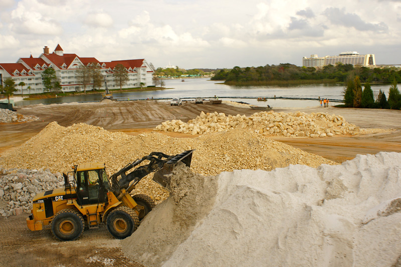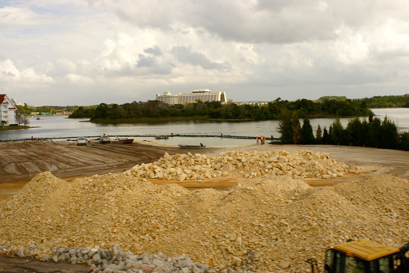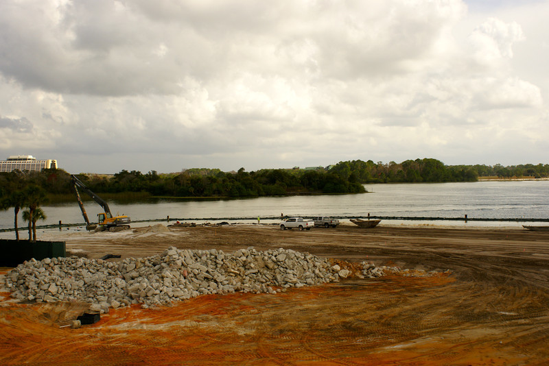 Meanwhile, some brush is being cleared from this island in the Seven Seas Lagoon