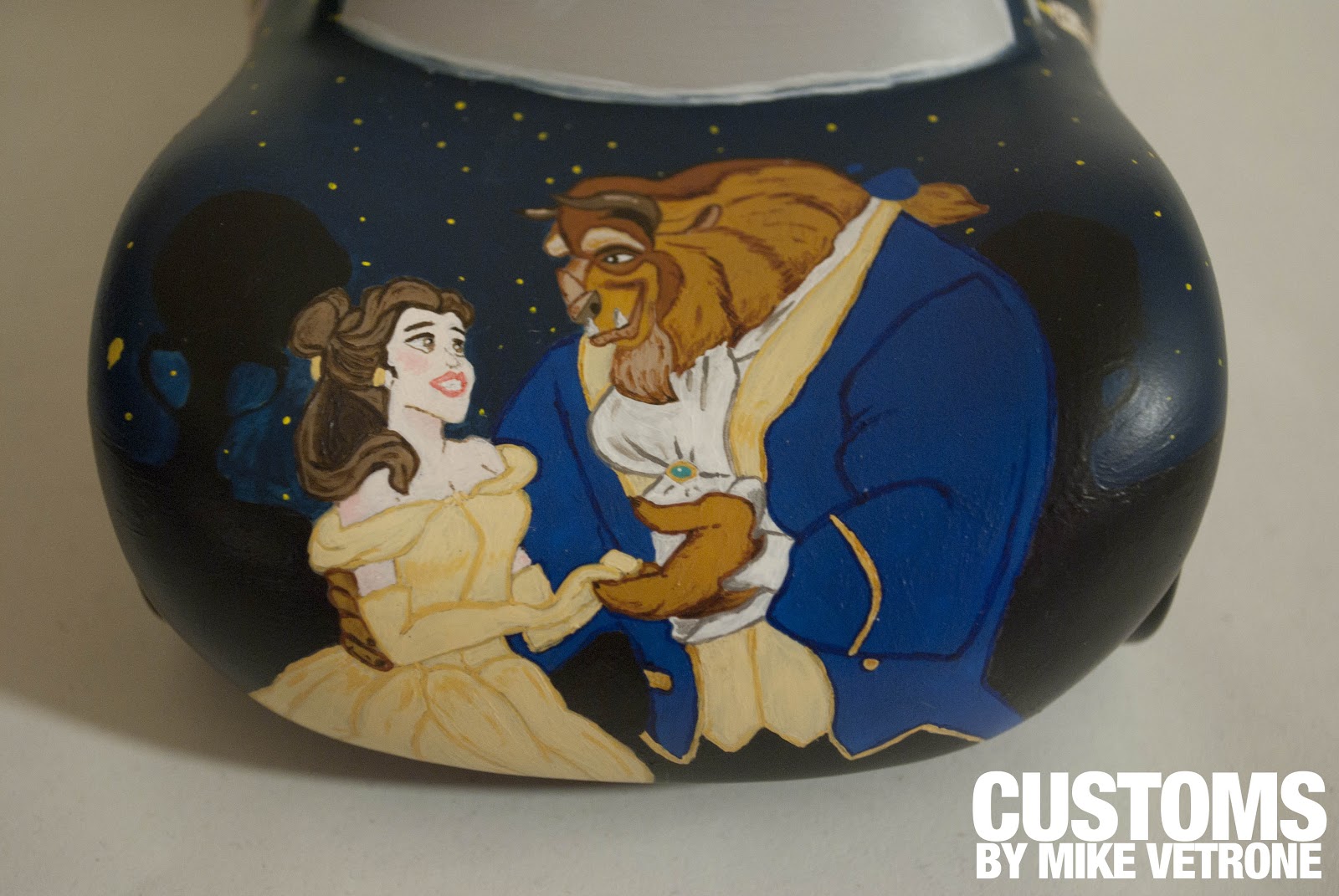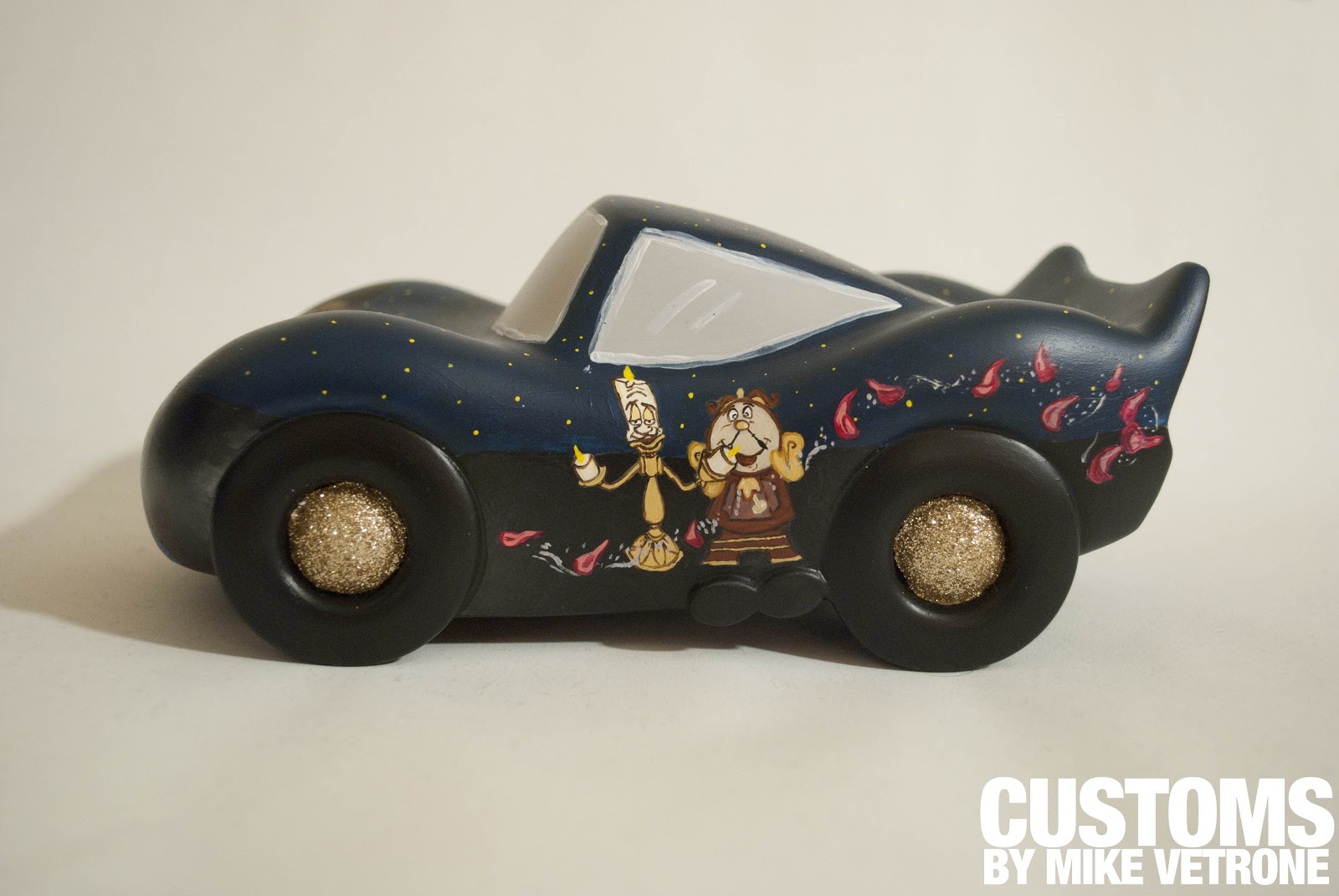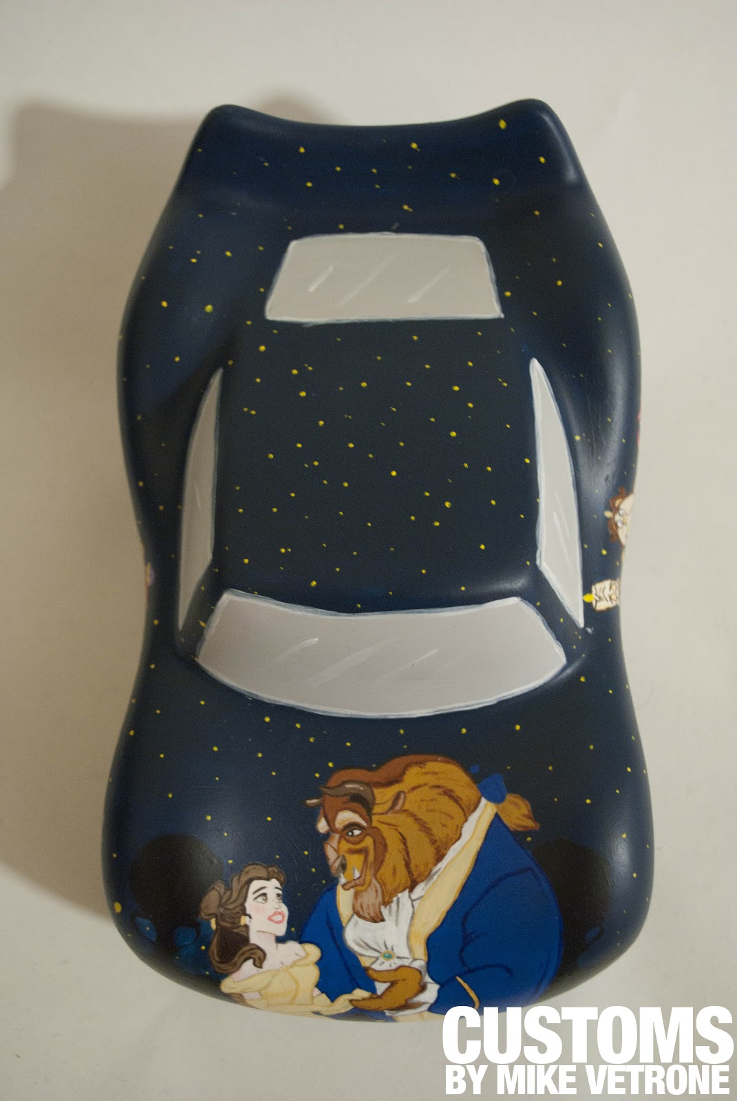 Artist Mike Vetrone just sent us pictures of his newest creation. My jaw dropped. This depiction of Beauty and the Beast is simply stunning. I love the added touch on the wheels. Take a look and let us know what you think…