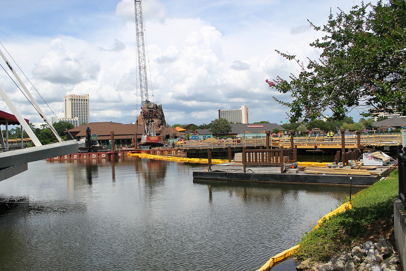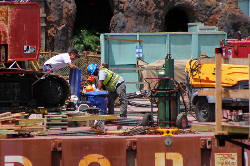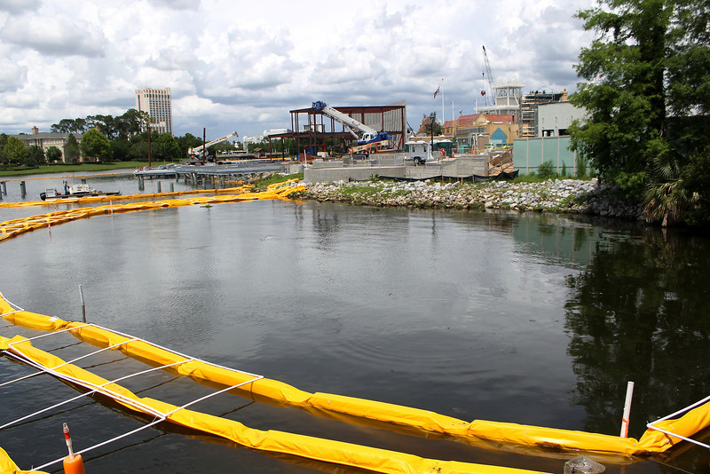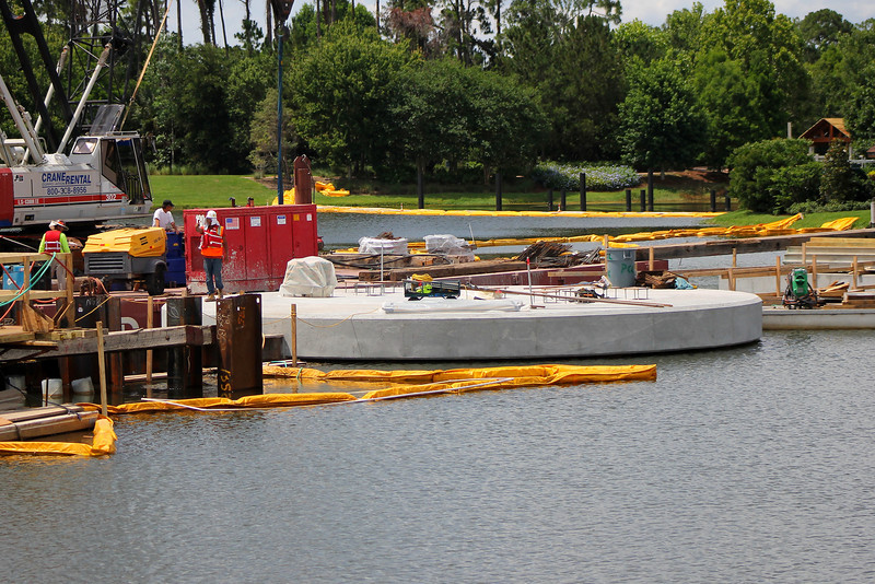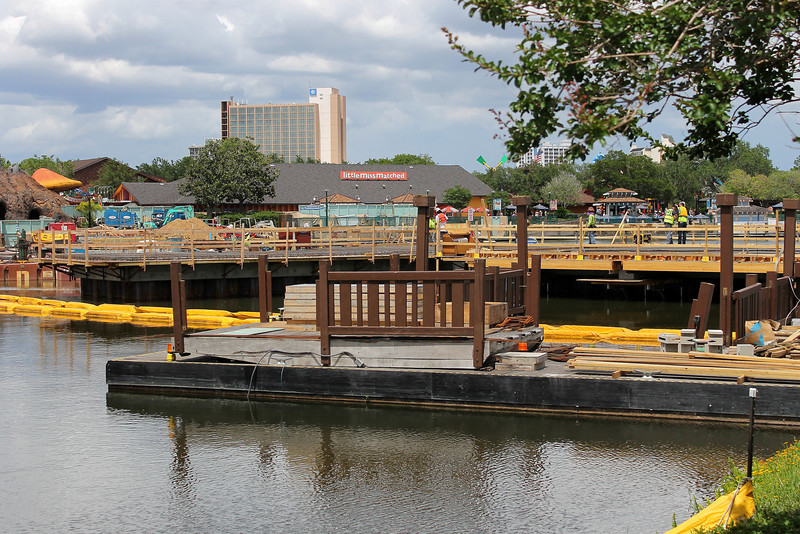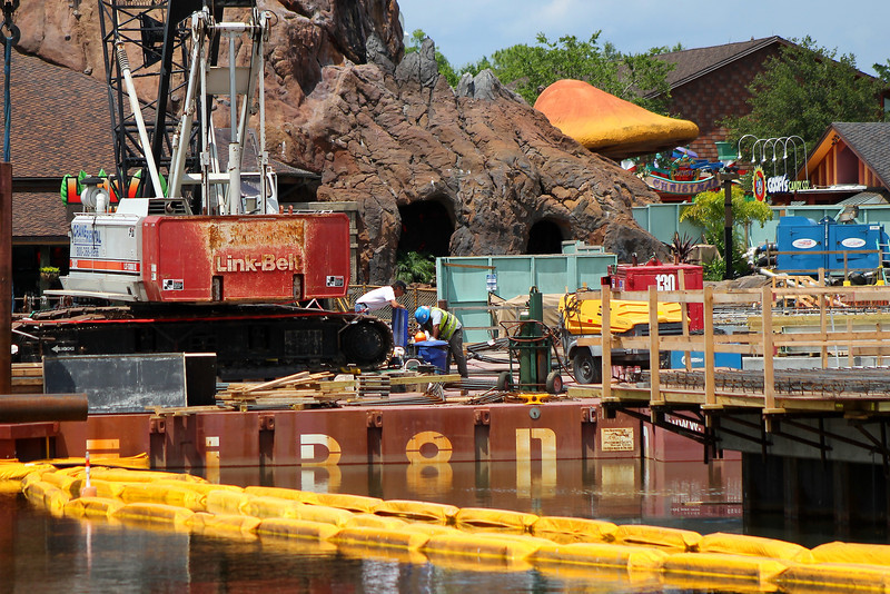 Work continues on the Rivers of America as it prepares for a Summer 2017 reopening, including a newly enhanced Fantasmic show.