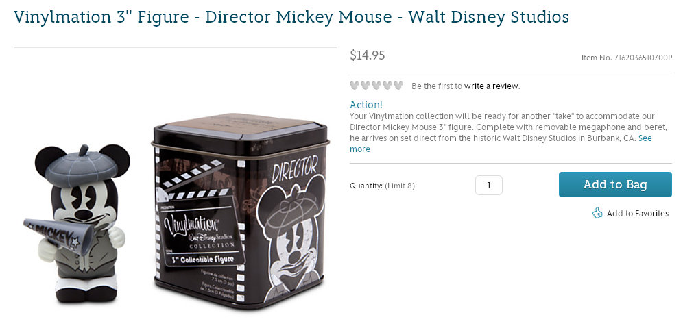 Right now, this is the only image we have of this Director Mickey. No details about edition size or if it will only be available at this Studio Store event. The event is part of the Disney Store’s 25th anniversary celebration on March 28th. Disney Store Artist Jim Valeri will be on hand from 11:30am – 1:30pm to meet and greet guests. As stated above, this store can only be accessed by Disney Studio employees, so it is a really great exclusive treat for them. They had a similar event with designers of the Animator Doll series.