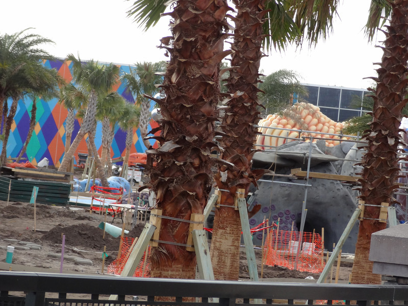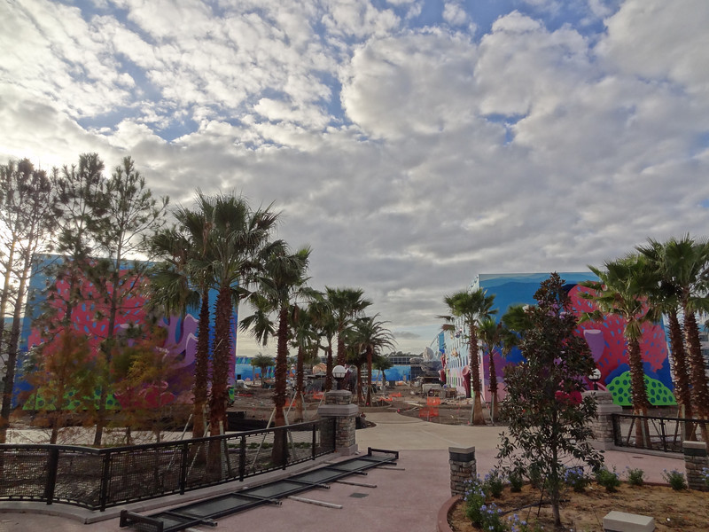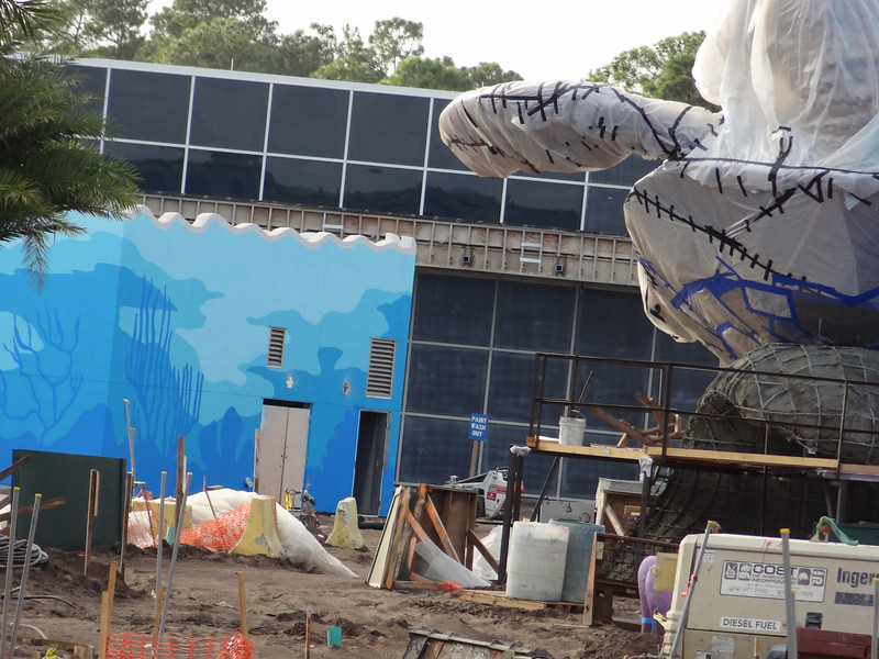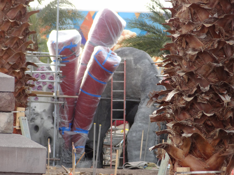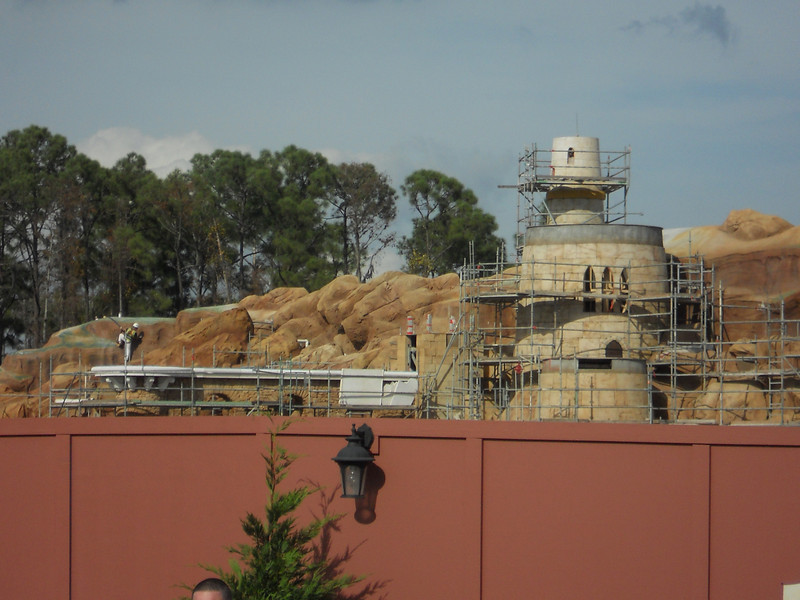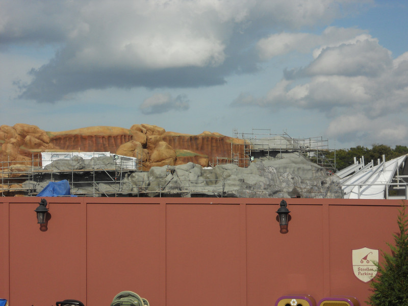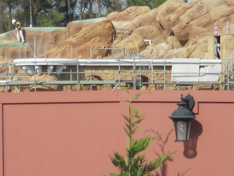 The painting of the rocks at the entrance to Tomorrowland is finally complete.