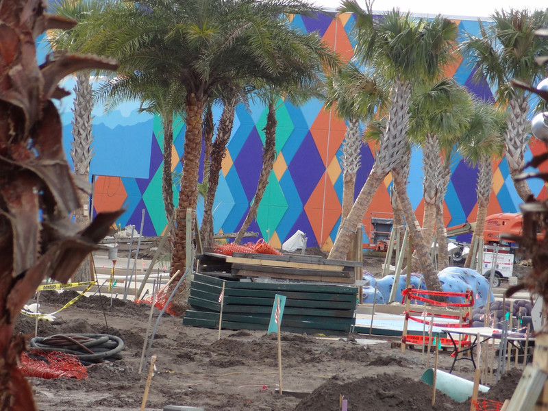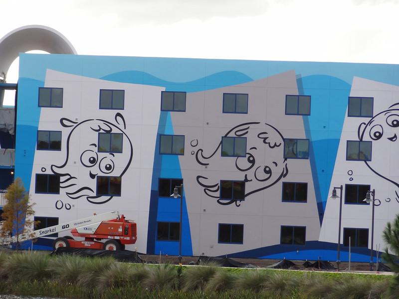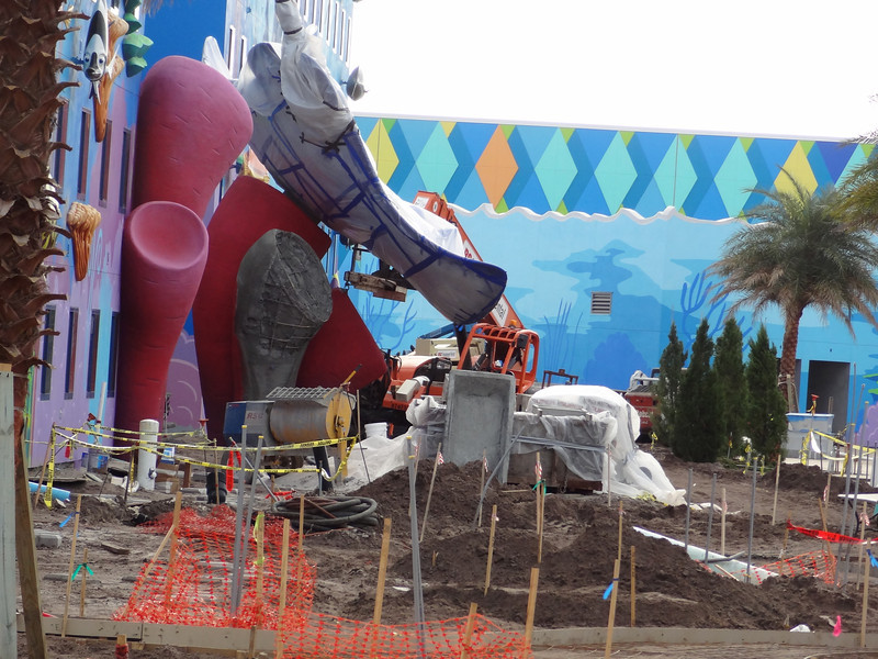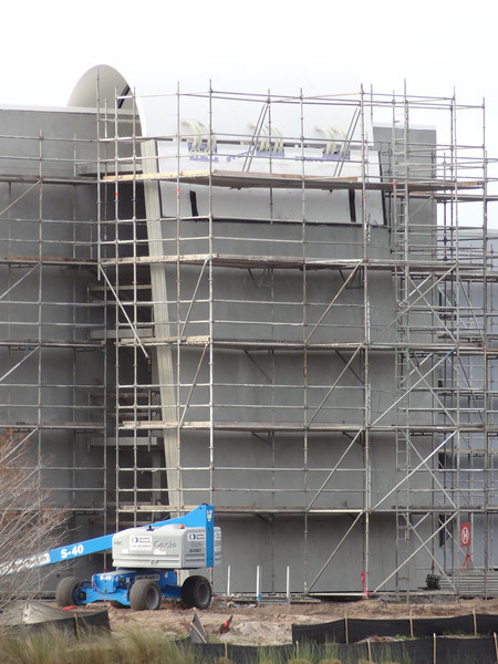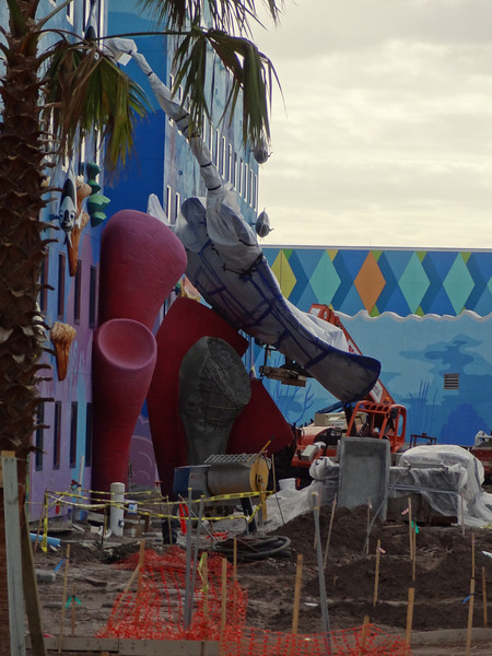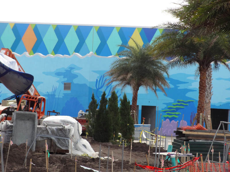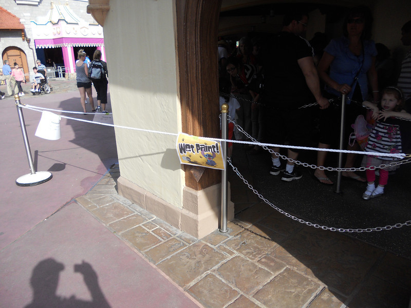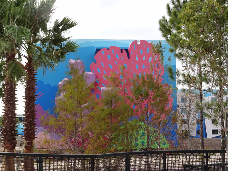 The painting of the rocks at the entrance to Tomorrowland is finally complete.