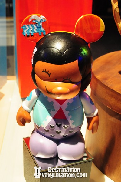 Mary Blair was a brilliant artist. Her style was so unique. She created the mural we all enjoy inside the contemporary resort. Monty captured the essence of her work in this vinyl. On the front is a girl. On the back is a boy. Both represent characters found on the mural. He used the ears to insert little things found through the wall, like the iconic five-legged goat.