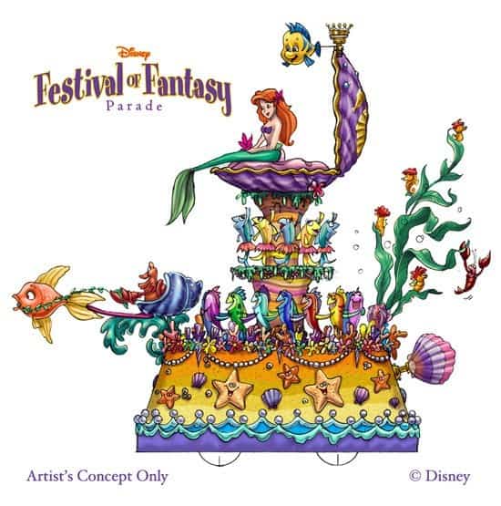 Ariel will sit on a large music box float to the tunes of Under the Sea