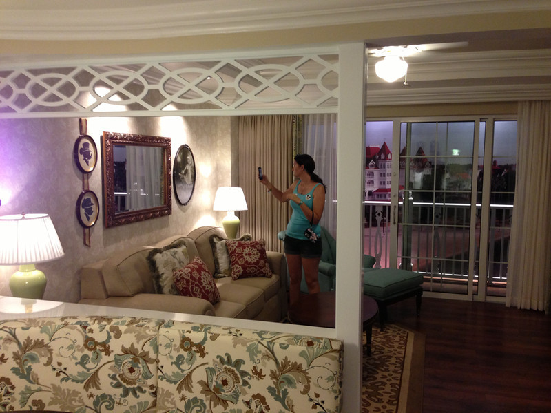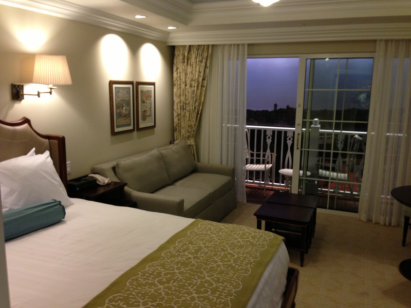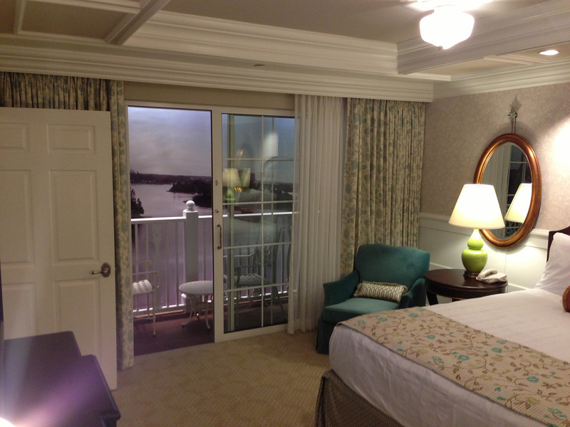 As you may recall, we toured the model rooms of the hotel a few months back. Even though we had seen what the rooms would look like, walking into them and seeing the Seven Seas Lagoon outside the window was astonishing. That being said, lake views are not rare and the Grand Floridian, but the proximity to the Polynesian and the Wedding Pavilion provided some interesting new vantages.