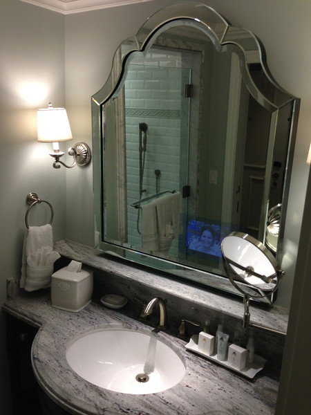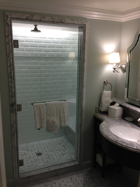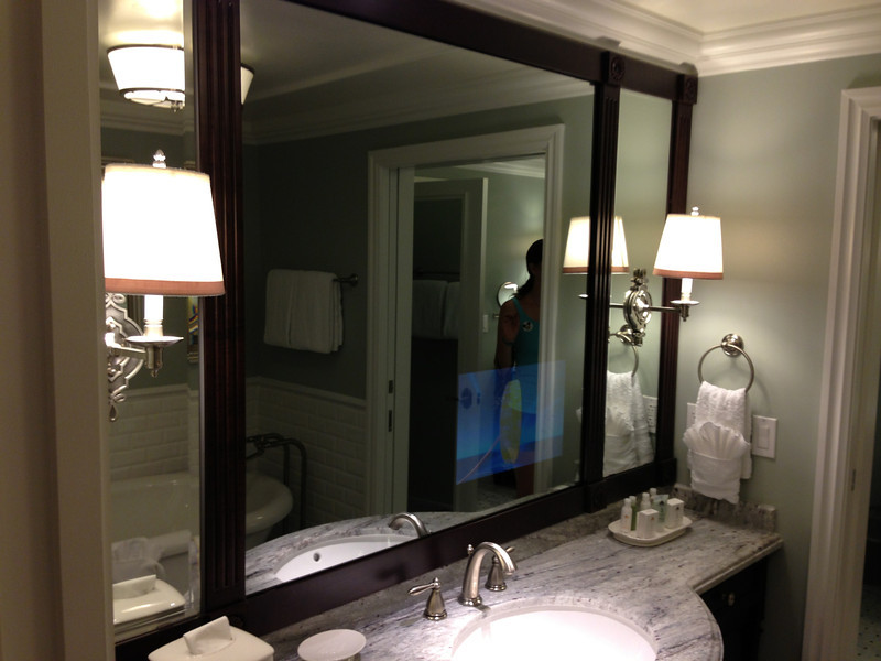 The bathroom was spacious and very nice as well. We did use the television hidden in the bathroom mirror while taking a bath and it was really enjoyable (as were the massage jets in the bath tub). The shower was ridiculous… I felt crazy using a shower quite that large. I know the room sleeps a lot of people, but I don’t foresee putting everyone in the shower at once…