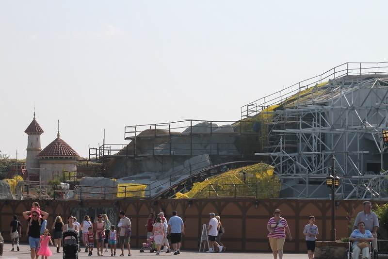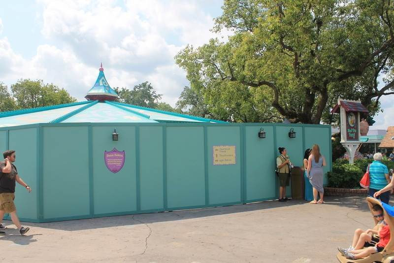 Work continues on the former Fantasyland restrooms near Peter Pan