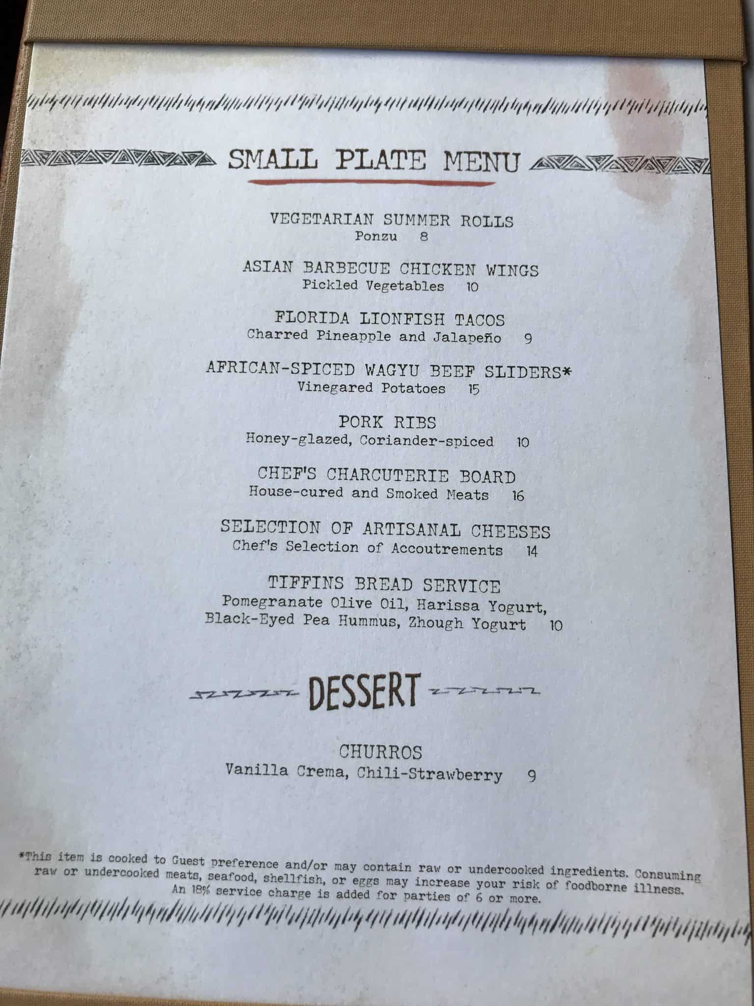 Tiffins is going to offer you unparalleled service and meals. I could see those with children wanting to pick Tusker House for the package (or to save some money as the Tiffins version is a little more expensive), but I can’t imagine anyone reading this site would be disappointed in dining here, even when it is almost $70.00.